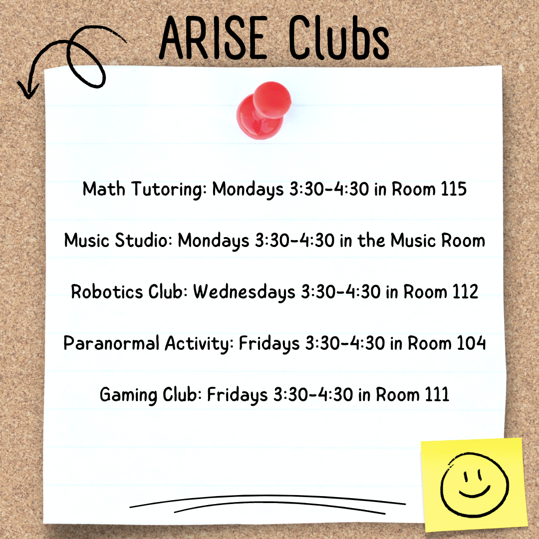 Here is ARISE’s most up-to-date Club Roster for the 2024-2025 Fall Semester: